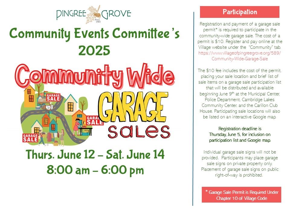 Register online for the Community Events Committee's community-wide garage sale. Permit required to participate.